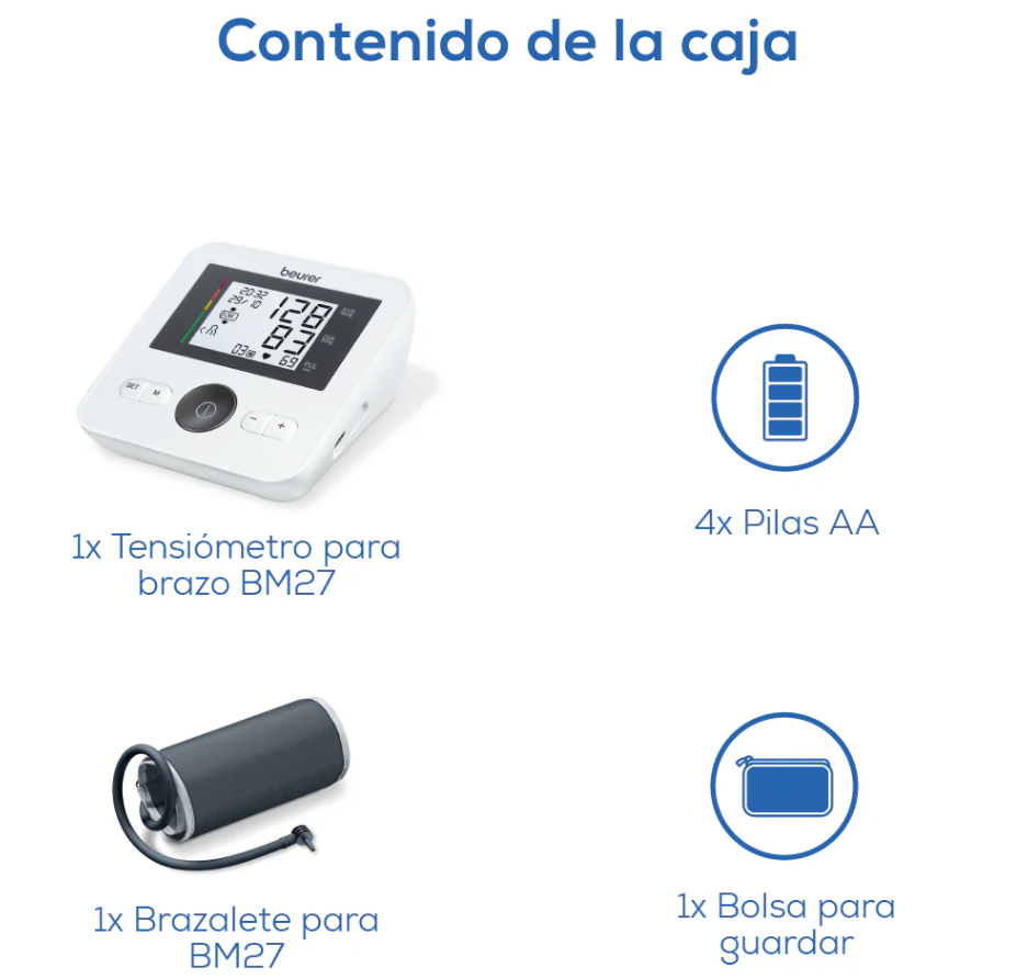 Con el tensiómetro de brazo BM 27 la medición es todavía más fácil. El control de sujeción del brazalete y el aviso automático en caso de errores de aplicación le facilitan la tarea y, a su vez, ayudan a evitar errores en la medición.