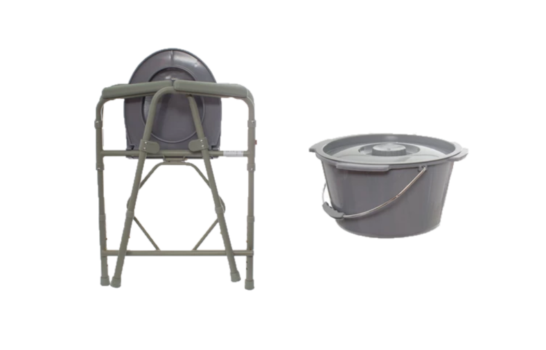 Asiento, tapa y cubeta de plástico, abatible y desmontable.