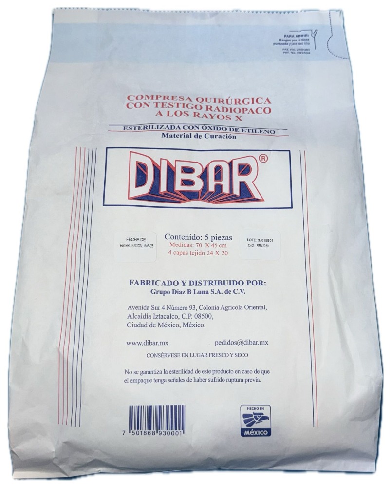 Compresa Quirúrgica Estéril Dibar con 5 Piezas