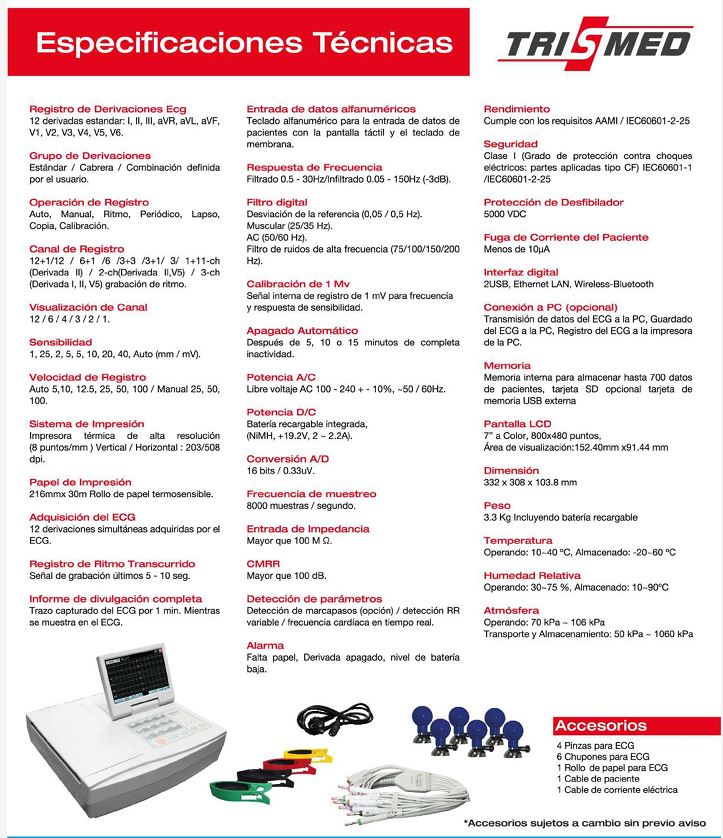 Electrocardiógrafo con Interpretación Trismed 812AR con Pantalla Touch