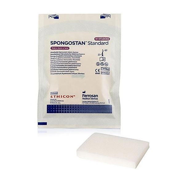 Esponja de gelatina absorbible para asistir en procedimientos quirúrgicos en el control del sangrado de venas capilares.