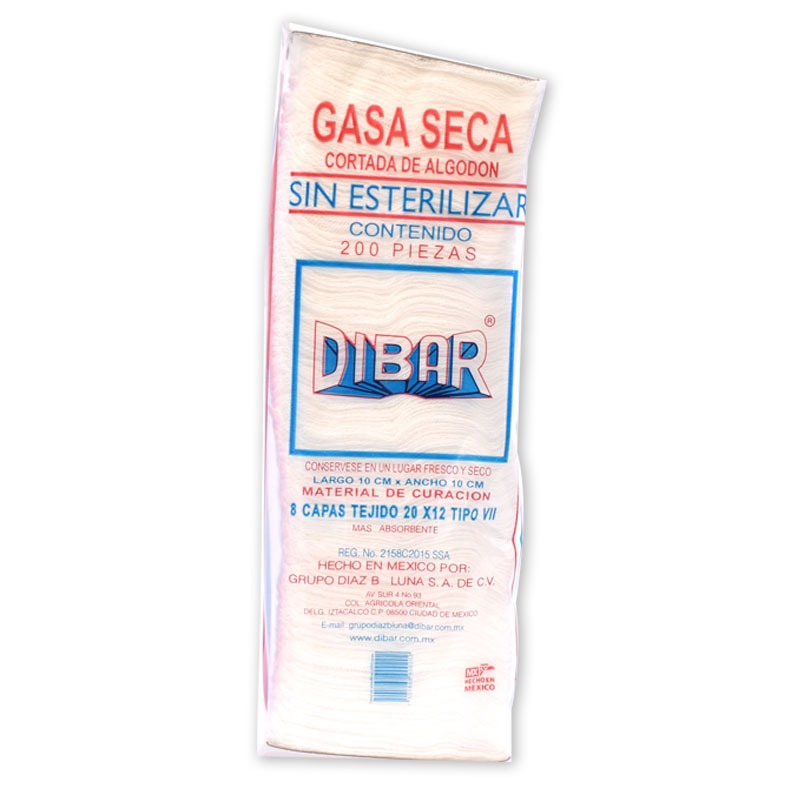 Gasa No Estéril 10x10cm Dibar [ Paquete con 200]