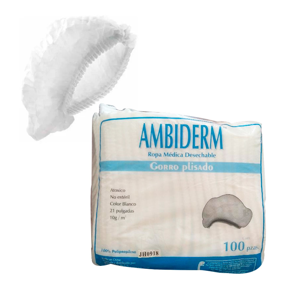 Gorro Plisado Ambiderm con 100 pza Blanco