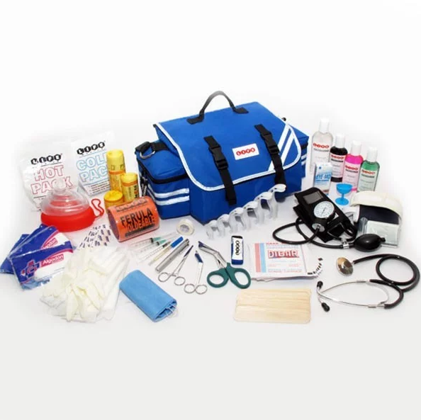 Botiquin tipo maletin, fabricado en polieter plastificado. Con cintas reflejantes, tamaño práctico y de facil transporte.