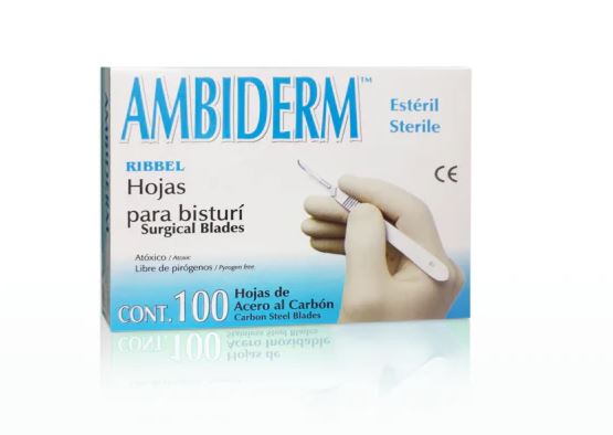 Navaja para Bisturi Acero al Carbón Ambiderm Caja con 100