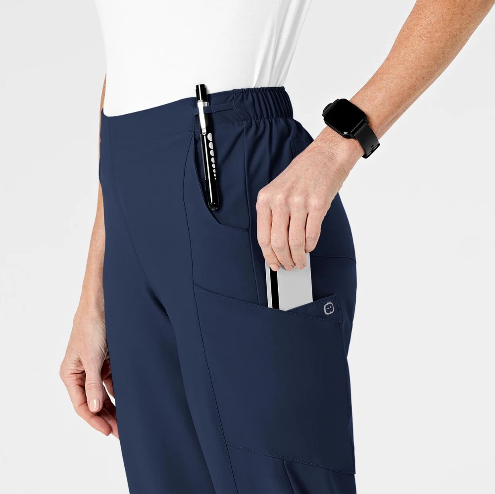 Manténgase organizado a través de turnos largos y días de clínica ajetreados. Estos pantalones cargo para mujer tienen muchos bolsillos que mantienen todos tus elementos esenciales fácilmente accesibles. Los bolsillos delanteros y los bolsillos de carga ofrecen almacenamiento espacioso para artículos más grandes. Un soporte para teléfono celular y una ranura para bolígrafo mantienen estas necesidades listas pero fuera del camino y los bolsillos traseros con cierre de velcro ofrecen un almacenamiento seguro. La tela suave y elástica garantiza una movilidad total mientras se mueve entre las habitaciones de los pacientes y la estación de enfermeras. Los dobladillos ventilados de las piernas caen fácilmente sobre sus dobladillos mientras se mueve de la sala de examen al armario de suministros y viceversa. La cintura elástica frontal plana tiene un cordón interior para que puedas ajustar el ajuste.