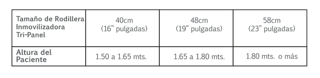La Rodillera inmovilizadora Tri-Panel está diseñada sólo para utilizarse una vez durante el proceso de la rehabilitación, no podrá ser reutilizada en futuras ocasiones.
