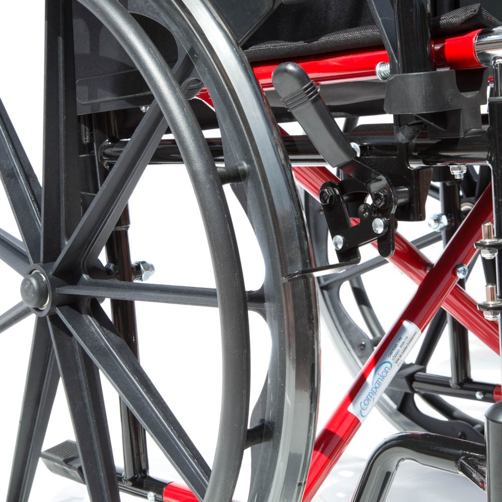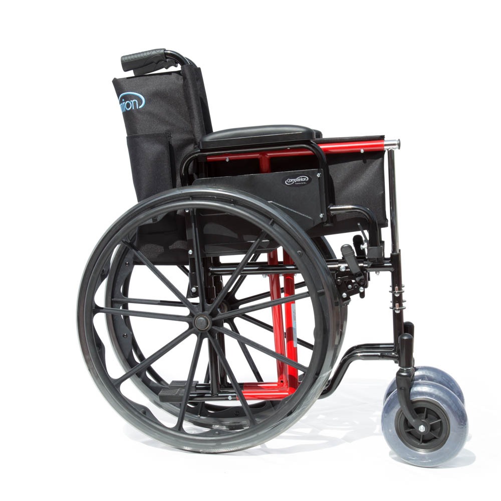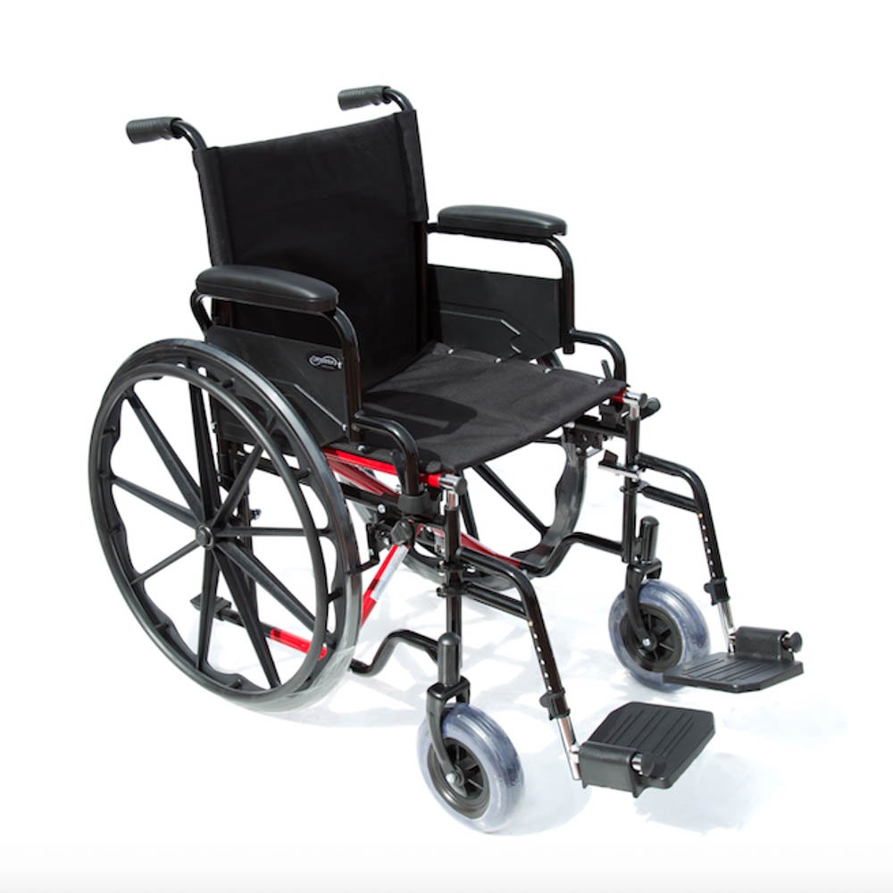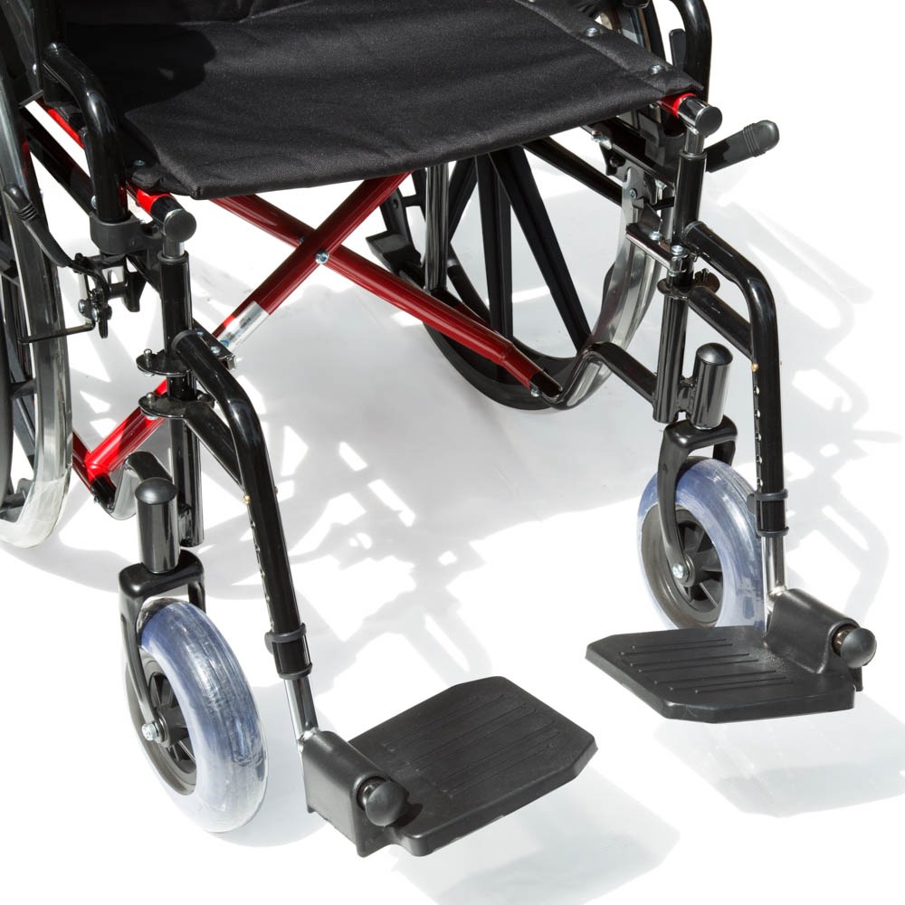 Silla de Ruedas Black Reforzada Hecha con una resistente estructura de ACERO Sus asientos en Nylon los hace resistentes, y frescos. Su llantas son de policarbonato tipo Mag lo que las hace resistentes con respecto al peso. Las llantas delanteras son más anchas lo que permite un mejor desplazamiento evitando atorarse en terrenos difíciles. El asiento es más amplio para un mayor confort con descansabrazos tipo escritorio, lo que la hace una silla perfecta para hacer actividades en oficina, para comer o actividades que requieran acercarse a alguna mesa o escritorio. Estos descansabrazos también son abatibles lo que permite el traslado del usuario a sillas, camas, reposets.