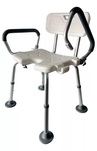 Silla para ducha con descansa brazos abatibles y acolchados.