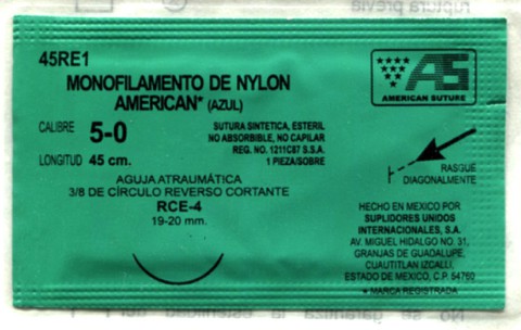 Sutura sintetica no absorbible, no capilar. Esteril.